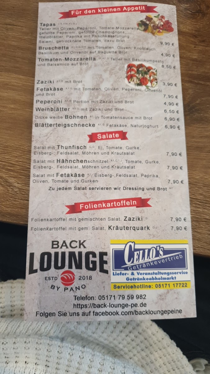 Back Lounge By Pano Menu